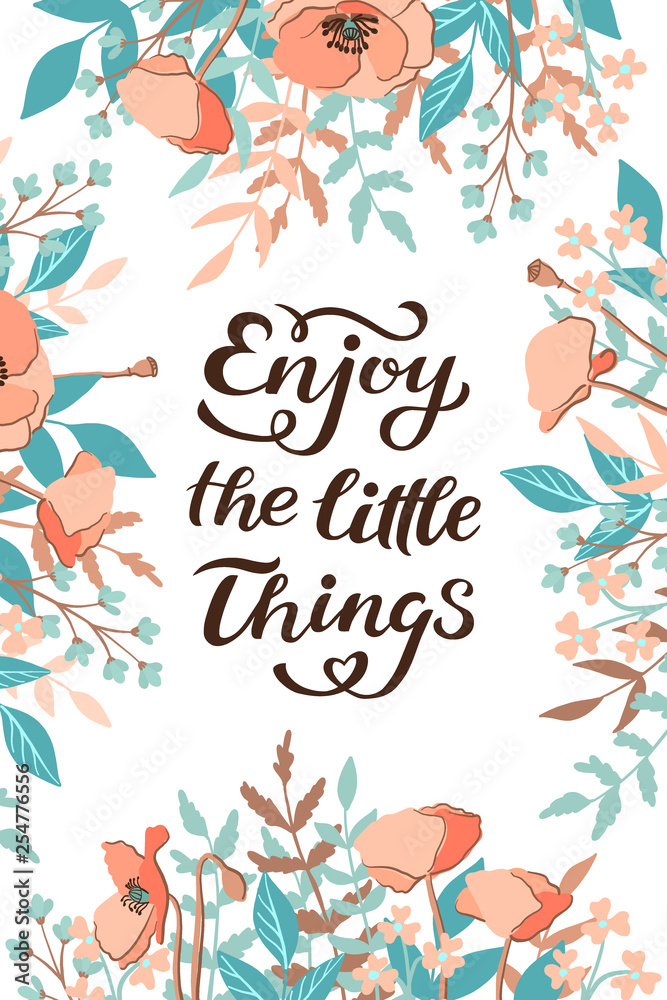 Enjoy The Little Things Quote Print In Vector Lettering Quotes Motivation For Life And Happiness Stock Vector Adobe Stock
